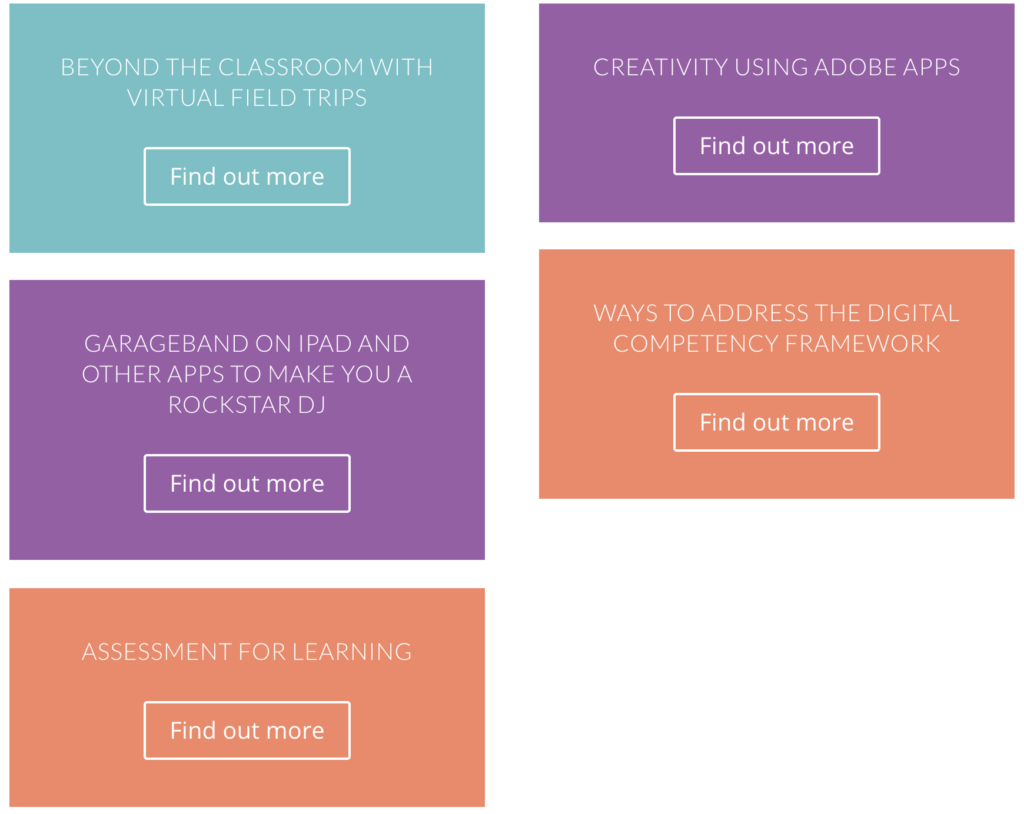 Additionally we have Apple Distinguished Educator, Catherine Jessey from Hove Park School (an Apple Distinguished School no less!) sharing a number of workshops which you can see below: