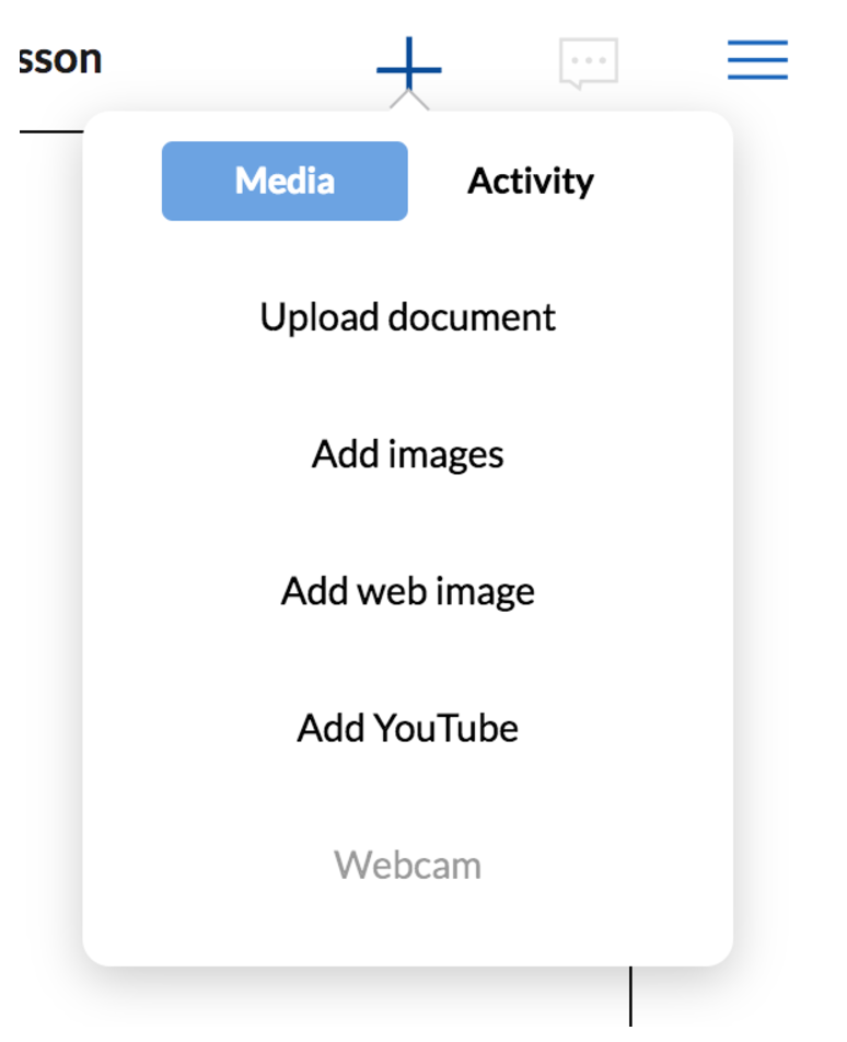 From here you can create all the slides that you want to run in front of children. You use the + icon in the top right to add in a bunch of great features. From here you can either add content or add activities.