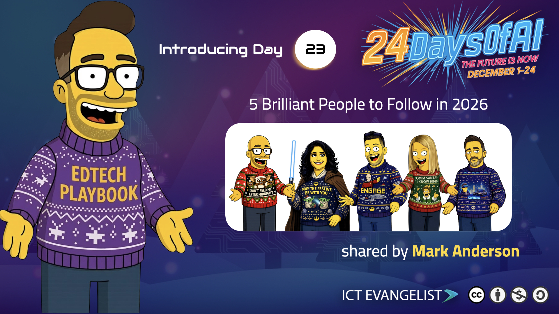 Today’s a bit different. On this, the penultimate day of the 2025 24DaysOfAI Appvent Calendar, I wanted to, instead of highlighting a tool, share five brilliant people you should be following as we move into 2026. These are educators and innovators who consistently deliver value, challenge thinking, and most importantly, keep students at the heart of everything they do in the world of technology and AI.