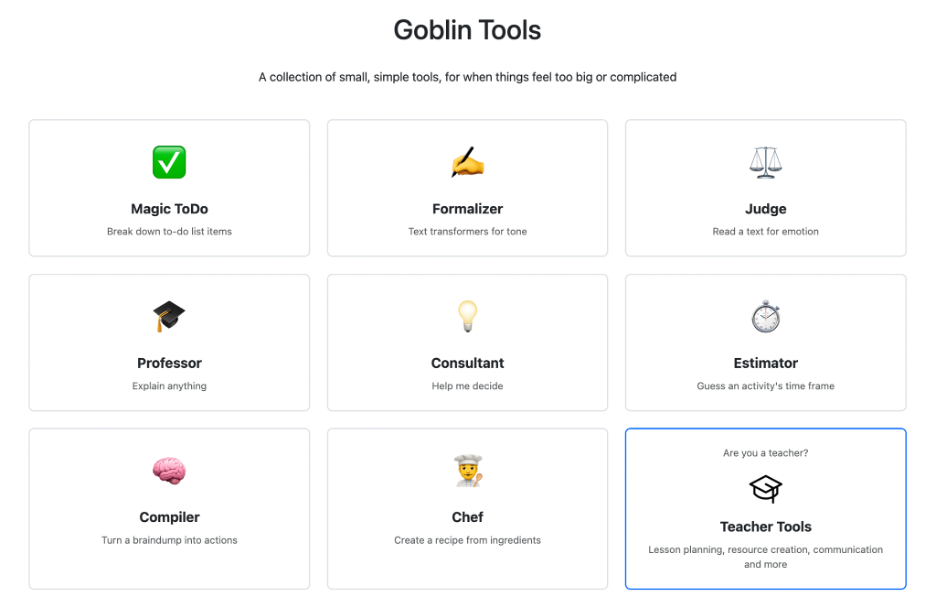 As teachers, we often meet students who find organisation, planning or getting started with tasks far more challenging than the learning itself. For neurodivergent pupils in particular, the executive function demands of school can quickly become overwhelming. Goblin Tools is one of my favourite AI resources because it was created specifically with these learners in mind. Although designed to support neurodivergent students, including those with ADHD, its gentle, structured guidance can help anyone who finds certain tasks intimidating or difficult to initiate.