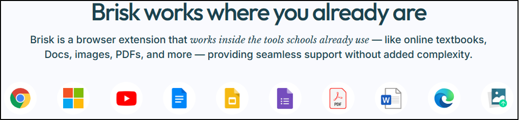 BriskAI is an AI-powered Swiss Army knife for teachers. It is cleverly designed to support planning, instruction, feedback, differentiation, plagiarism checking, and everything in between without demanding a soul-sacrificing subscription fee. It works wherever you are – no cumbersome logins – it supports you in the platforms you use every day: