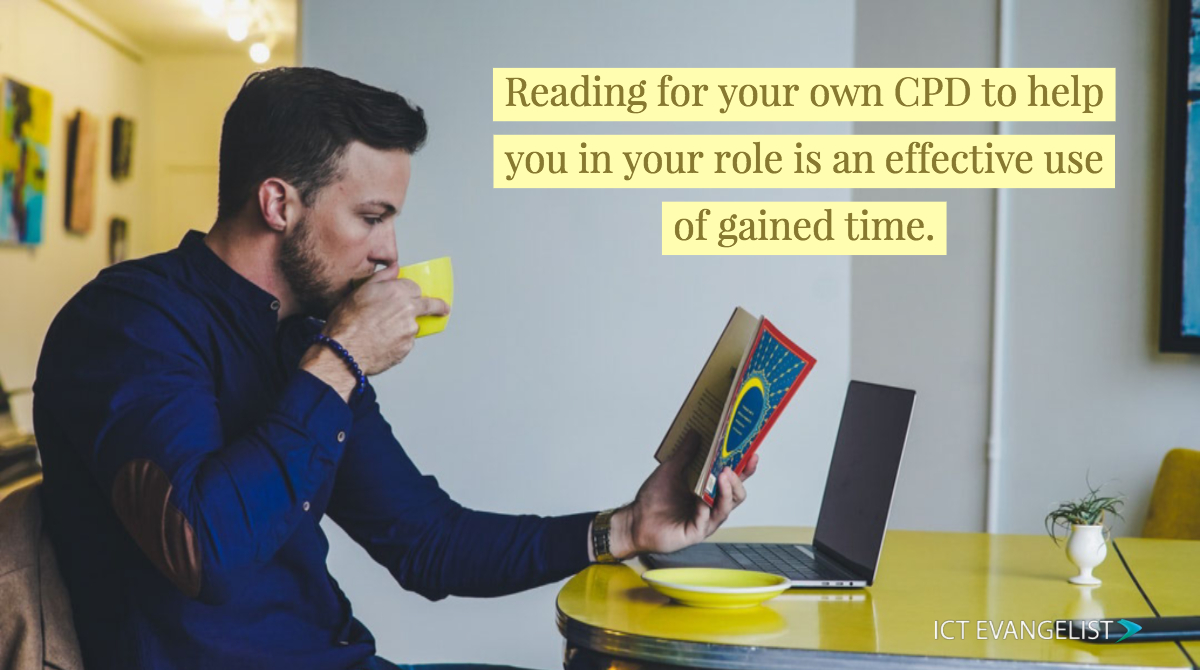 Hopefully, your school has a mechanism for recording CPD you undertake in this fashion but if they don’t, don’t worry. Reading for your own CPD to help you in your role is an effective use of gained time. The things you learn from your reading could be likely to impact on the other planning work you will probably be undertaking either for your own classroom or if in middle or senior leadership, for colleagues, classes or teams. The reading doesn’t necessarily even need to be the latest recommendation from my newsletter, it could be information from one of your exam boards about developments to the syllabus, it could be anything related to what you’re focusing upon. By having it to hand you’ll be able to grab moments (for example if that planning meeting finishes early) to get yourself back into your reading. I realise that having dedicated time for reading is helpful and important but sometimes you have to fit it in when you can.