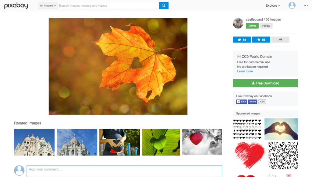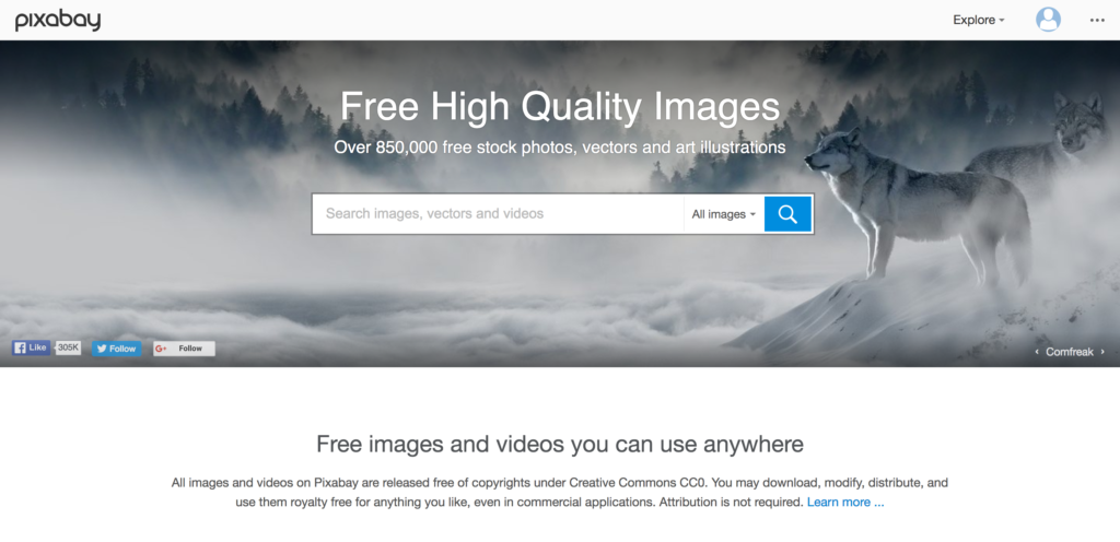 Simply go to the Pixabay website, sign in with your Google, Facebook or Microsoft credentials and you’re good to go! Simply search for what you want and away you go.