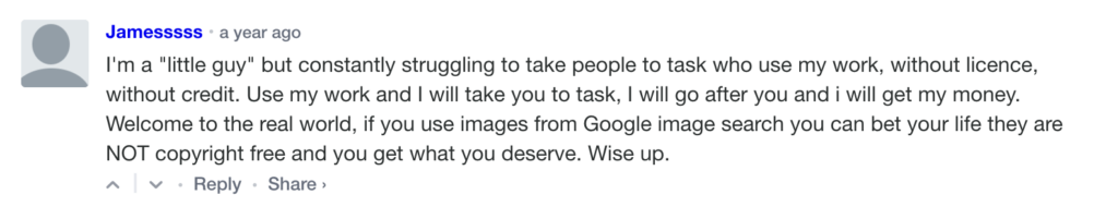 I think this quote from a comment thread on this post about Getty Images sueing people who use their images sums up the situation quite well…