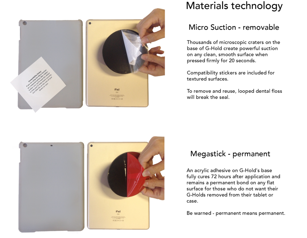 As you can see above the G-Hold fixes to the back of the device either on the tablet itself or to a pre-existing case. It grips on using suction rather than glue or anything else and it really is well and truly on there. That said there are permanent ‘megastick’ options if you really do want to have your G-Hold stuck to your tablet permanently.