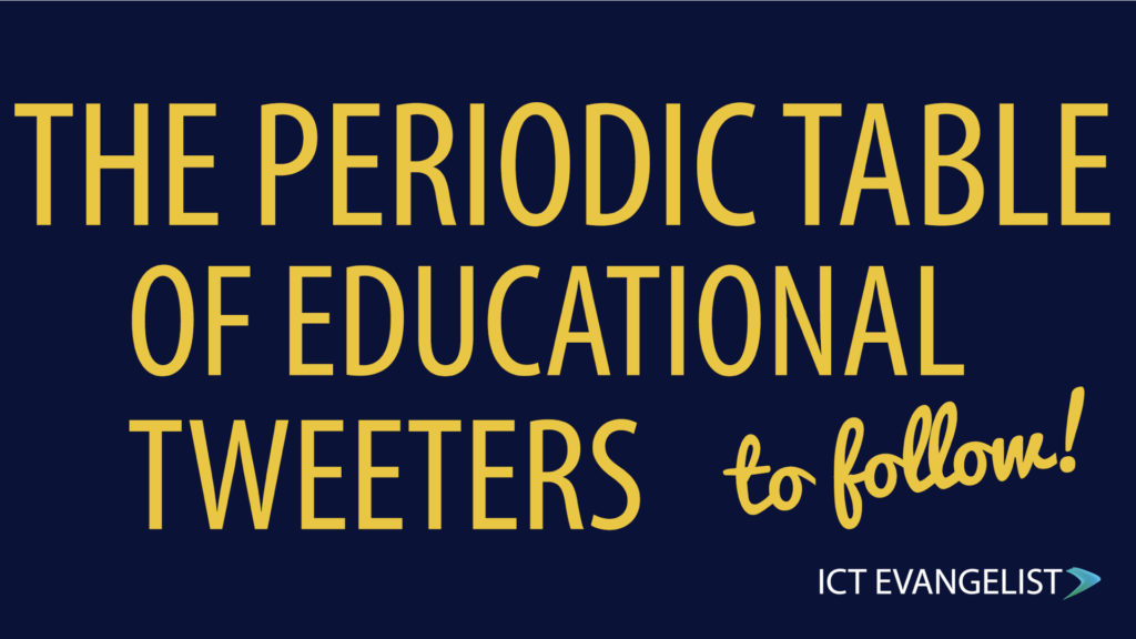 With lots of teachers looking for recommendations of who to follow I have created a new periodic table. This time my periodic table is one of educational tweeters to follow on Twitter.